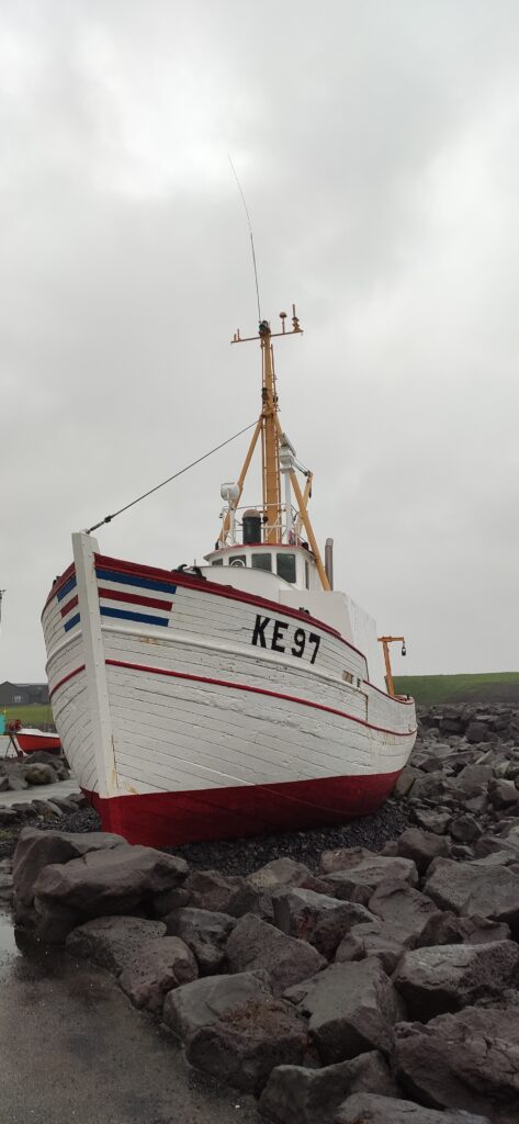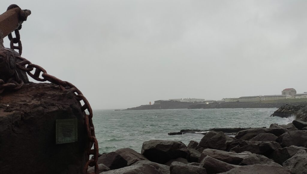 Wir machten noch einen sturmumtosten Spaziergang zum 100 m entfernten Meer und dem trollbewohnten kleinen Hafen von Reykjanesbaer, dann war Feierabend. Der Vulkan nebenan ist leider noch nicht wieder ausgebrochen …