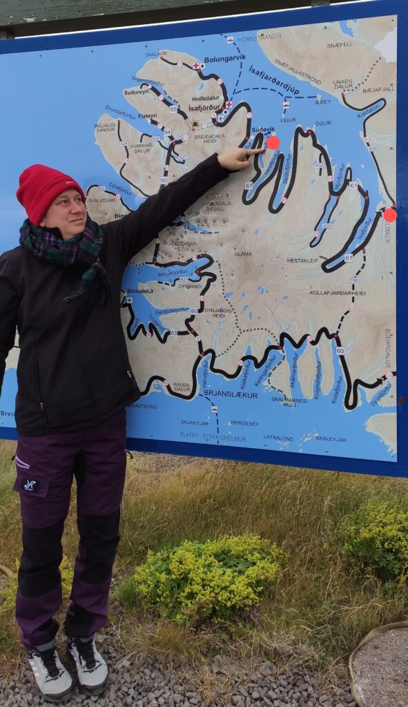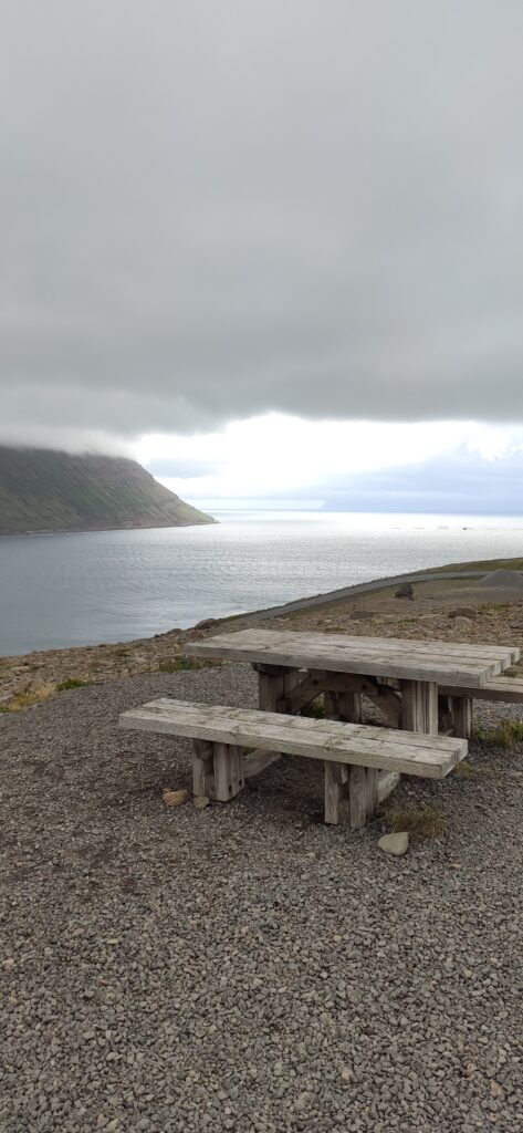 Tatsächlich durften wir zur Abwechslung einen halbwegs sonnigen Tag erleben. Es ging von Holmavik nach Isafjördur, 223 km durch menschenleere traumhafte Landschaft.