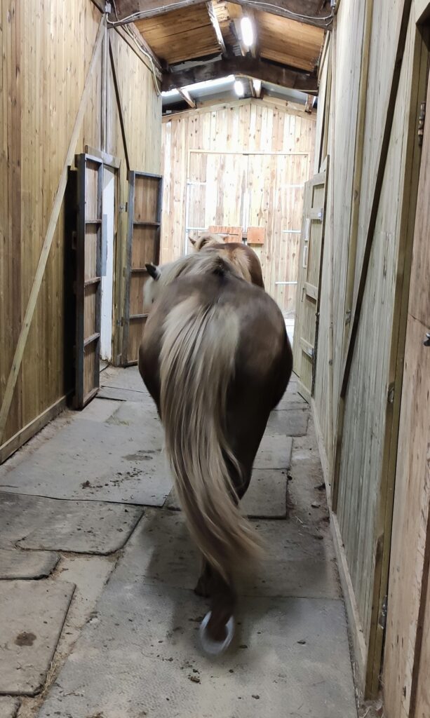 Danach durften alle 10 Pferde raus, was sie trotz einsetzendem Regen sichtlich freute. Wir hatten wirklich Glück – während unseres Ausritts blieb es trocken. Es war wirklich schön, danke nochmal an Annika 😊!