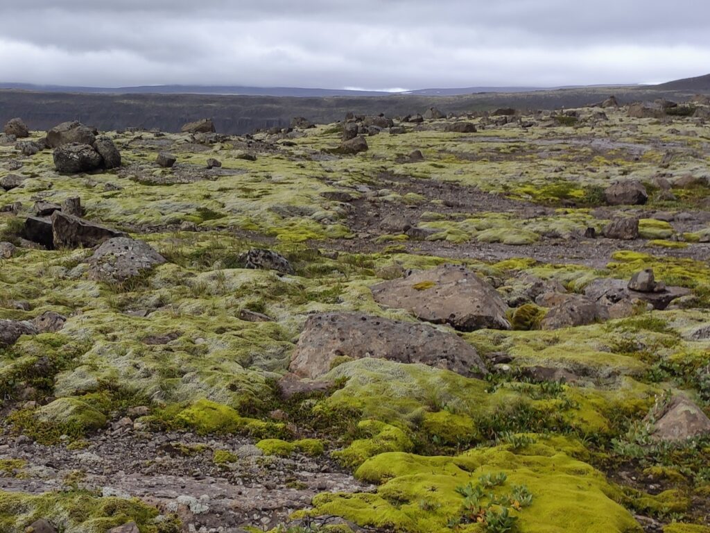 So sieht es da oben aus – Lavafelder, Moose, Flechten und natürlich Schafe. Man darf übrigens nicht einfach anhalten, weil man wird totgefahren, weil das Auto, das jede Stunde hinter einem kommt, einen nicht sieht, oder man fällt runter. Manchmal tut man es aber doch. Wegen Foto.