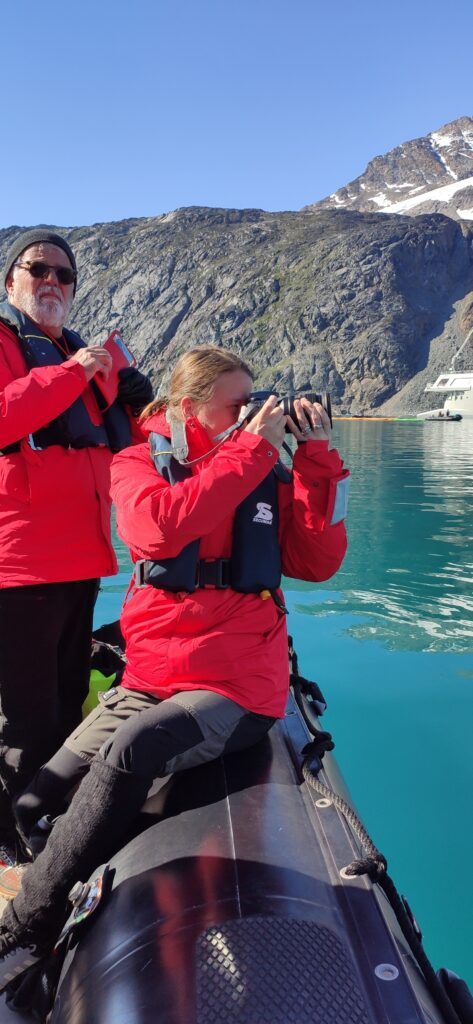 Ryan, the wonderful Bird-Nerd. Er weiß alles über Skuas, Puffins, Kittiwakes und Co.. Hier muss er allerdings über Gletscher reden, fällt ihm bisschen schwer. Wenn man im Expedtionsteam ist, absolviert man vorab eine Zodiac-Fahrschule und Eisbärenwärter-mit-Gewehr-Ausbildung.