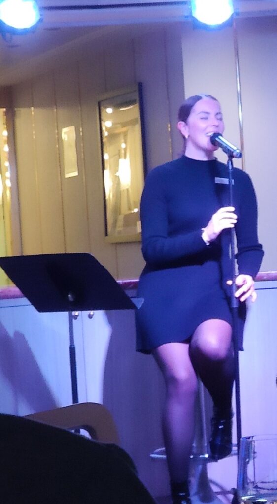 Entertainment ist dafür glücklicherweise überschaubar. Chloe ist Entertainment Direktorin, Musical-Sängerin und überhaupt für alles zuständig, weil perfekt. Also ein bisschen unheimlich, aber am Ende mochten wir sie doch. Unsere 34 chinesischen Kreuzfahrtgäste haben ihre gelegentlichen (guten) Darbietungen am Abend in der Panorama Lounge allerdings wenig beeindruckt. Sie spielten lieber Karten – laut. Sehr laut. Da half auch die Lecture über Western und Eastern Cultural Differences gleich am Anfang nix 😀