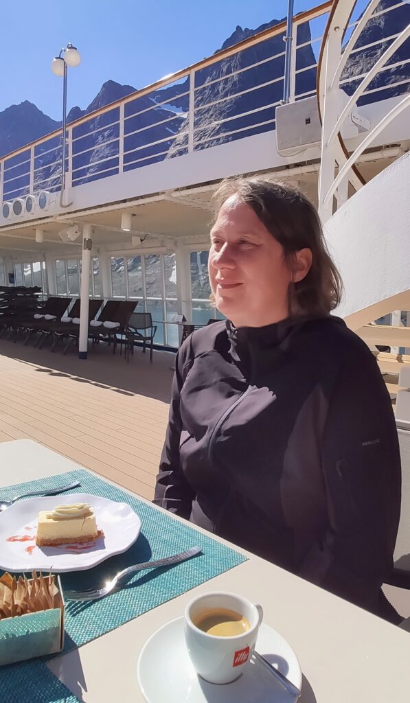 Von der Ostküste ging es über Nacht zur Südspitze Grönlands und in den spektakulären Prince-Christian-Sound (wobei in Grönland eh alles spektakulär ist). Vorher natürlich Frühstück. Man kann Restaurant, aber wir gehen meist Buffet. Das ist ebenfalls spektakulär. Echt.