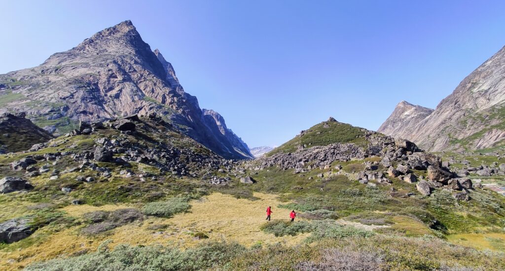 Es gibt tatsächlich auch Blümchen. Viel Angelica, ist quasi Grönlands Signature-Pflanze, aber auch andere wie diese hier. Und Blaubeeren, Flechten und Moose.