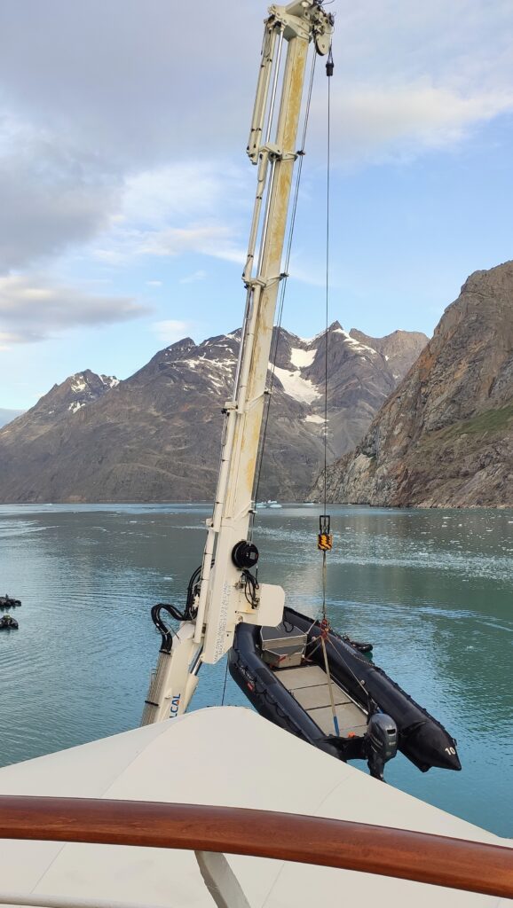 Ich konnte stundenlang beim Rauf- und Runterlassen der Zodiacs zuschauen. Reinsetzen war aber noch besser.