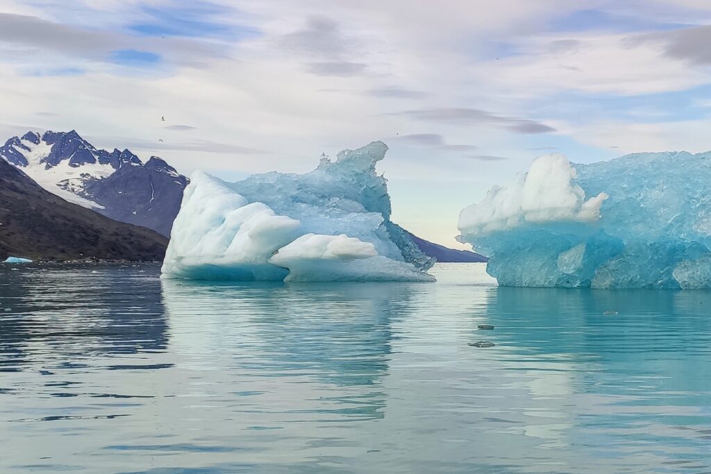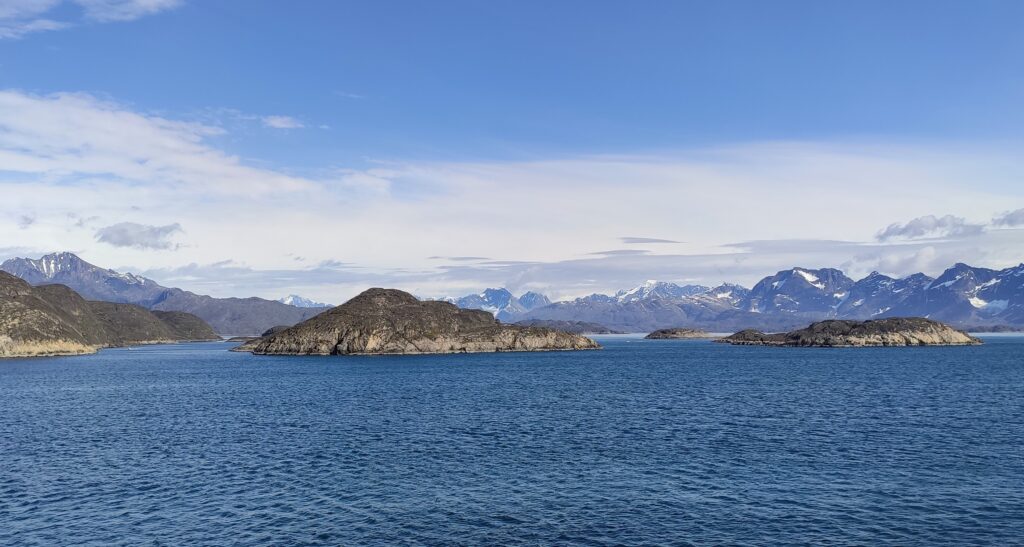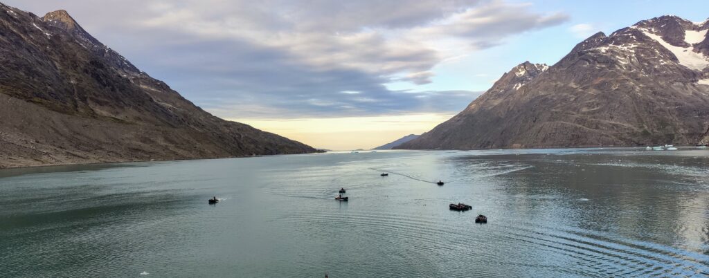 Entlang der Westküste ging es immer weiter Richtung Norden. Das Meer war spiegelglatt und wir fuhren durch den Evighedsfjord, was Ewigkeitsfjord bedeutet, bis zum gleichnamigen Ewigkeitsgletscher und dümpelten dort bis zum Mittag herum.
