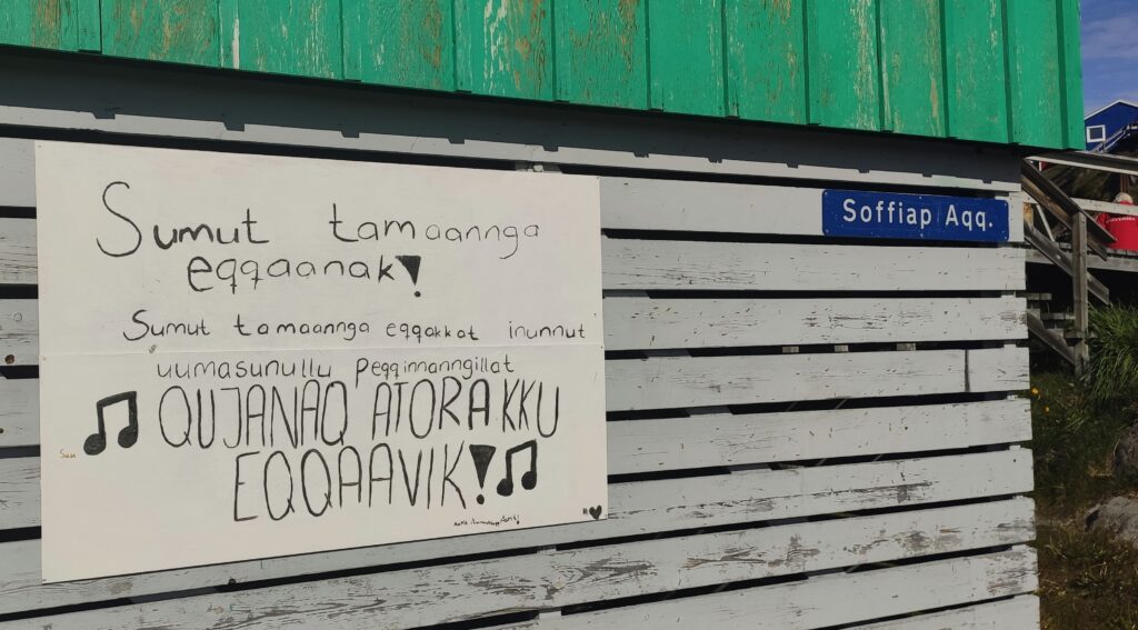 Wieder unten gingen wir spazieren, um den Berg herum bis zur Müllkippe (mit noch mehr Kinderwagen und Außenbordmotoren) und später in die Kirche. Mit den drei Ladies erlebten wir ein zauberhaftes Konzert mit inuitischen Volksliedern. Grönländisch ist eine sehr schöne Sprache.