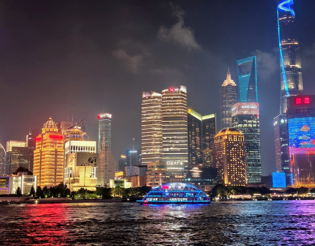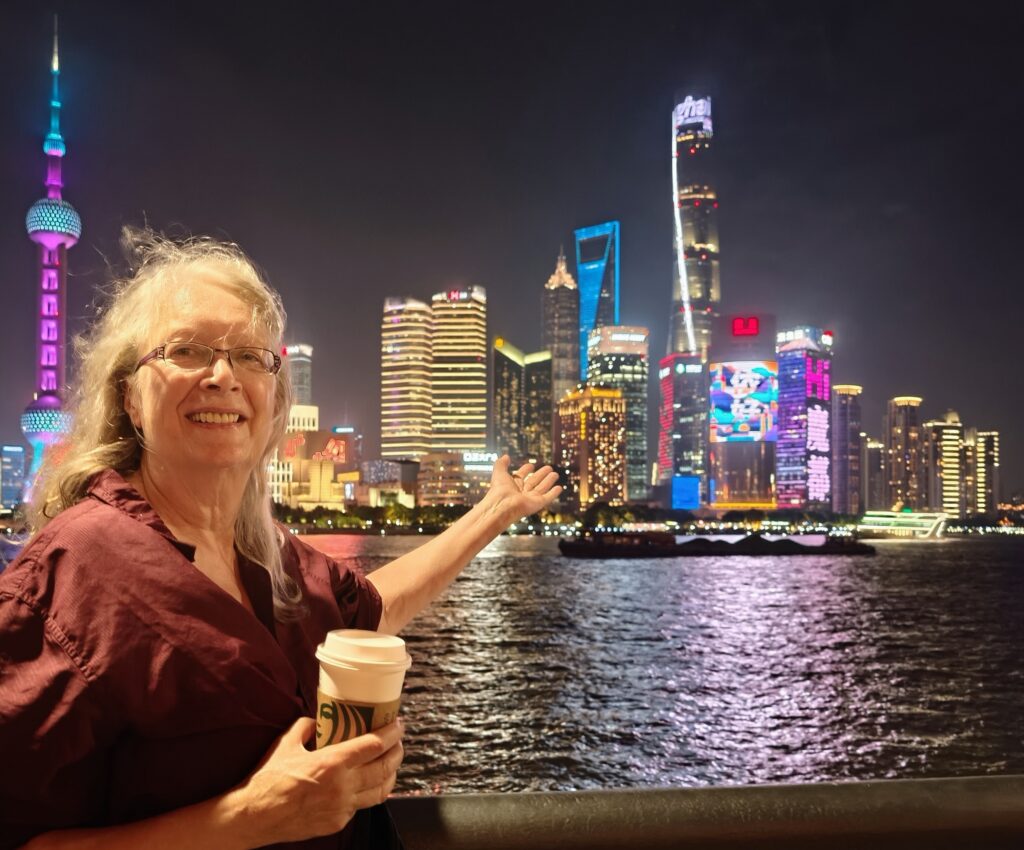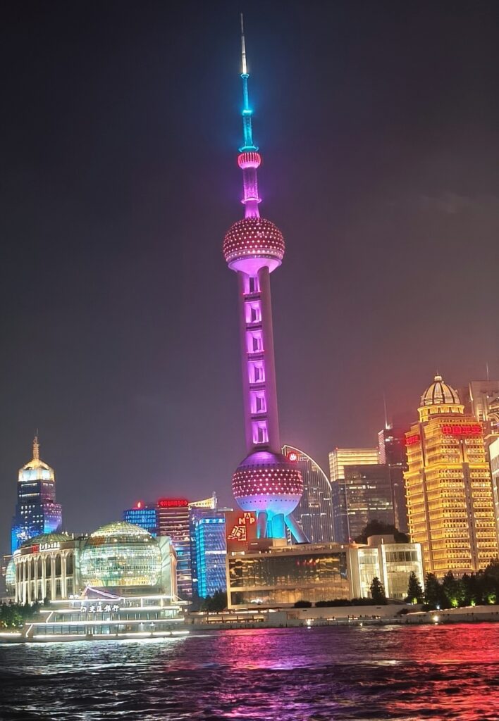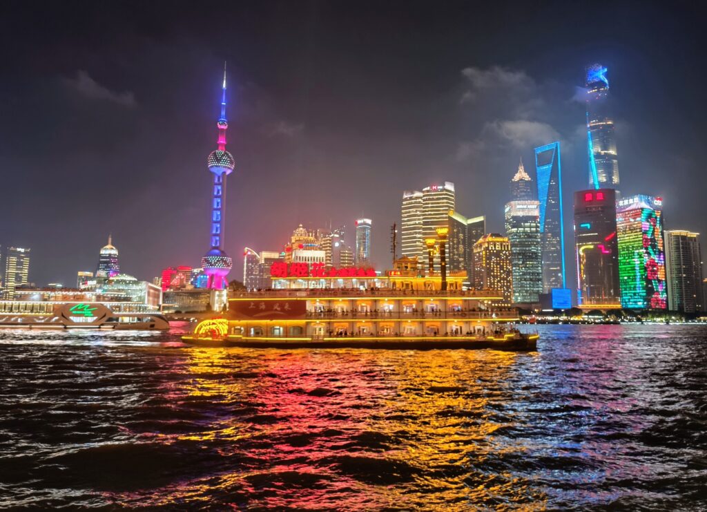 Da drüben ist Pudong, Shanghais Finanzcenter, mit dem Shanghai Tower, zweithöchstes Gebäude der Welt. Wir blieben unten.
