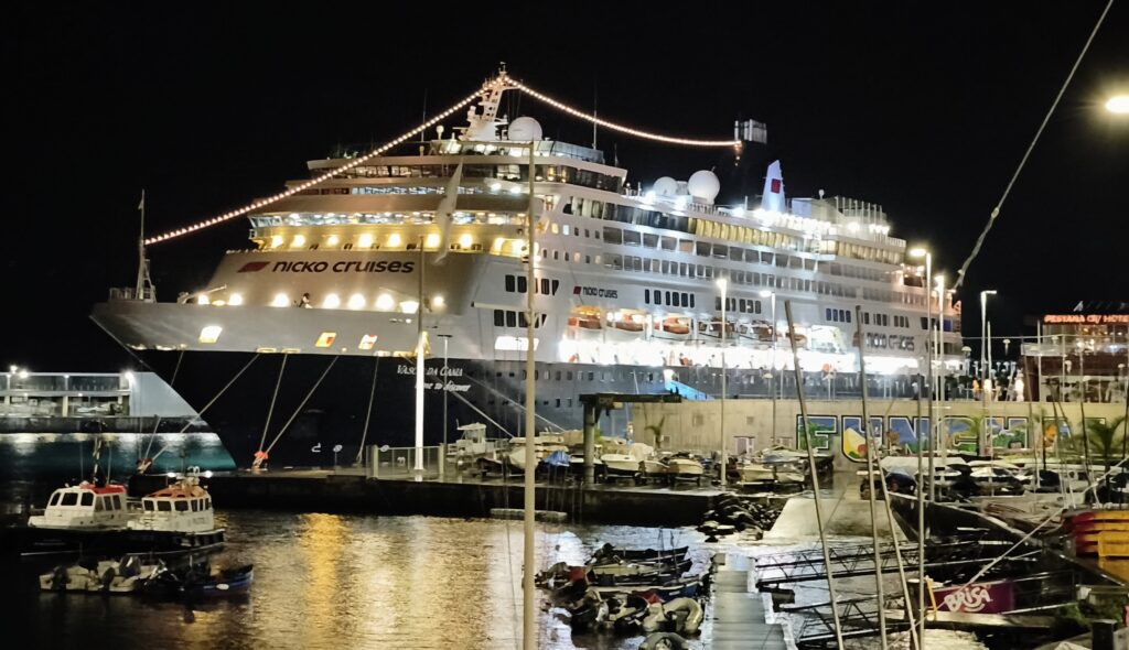 Ganz hinten die lovely Vasco da Gama. Kreuzfahrtgäste lieben den Blick von oben auf ihr Schiff.