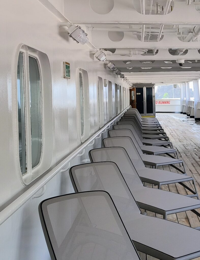 Und das sind die funkelnagelneuen Liegen, die wir nicht in Porto lassen wollten.