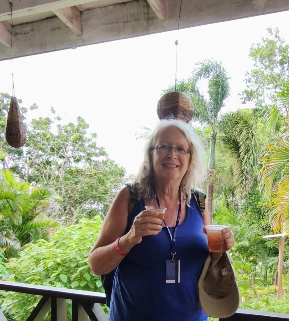 Etwas verschlagen blickende Touristin, hier noch mit allen Zähnen.