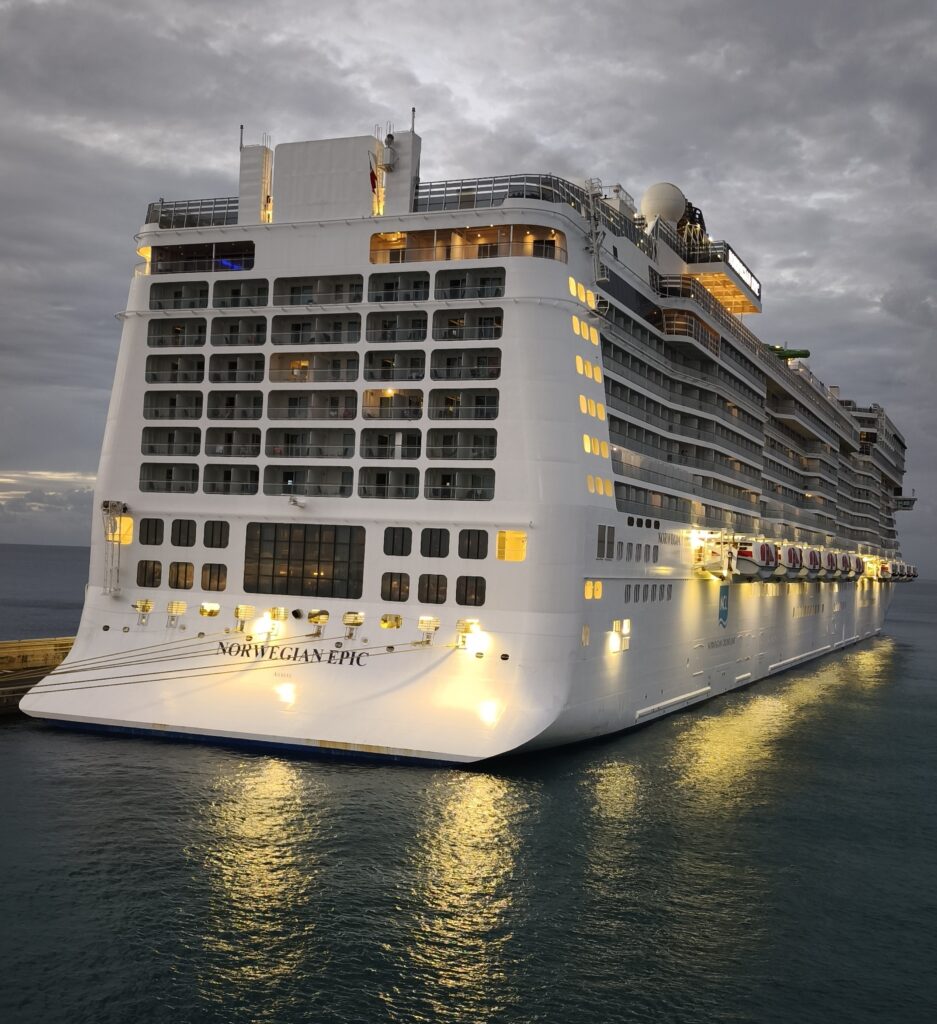Dann ging es zurück auf’s Schiff. Blick von meinem Balkon auf die gigantische Norwegian Epic.