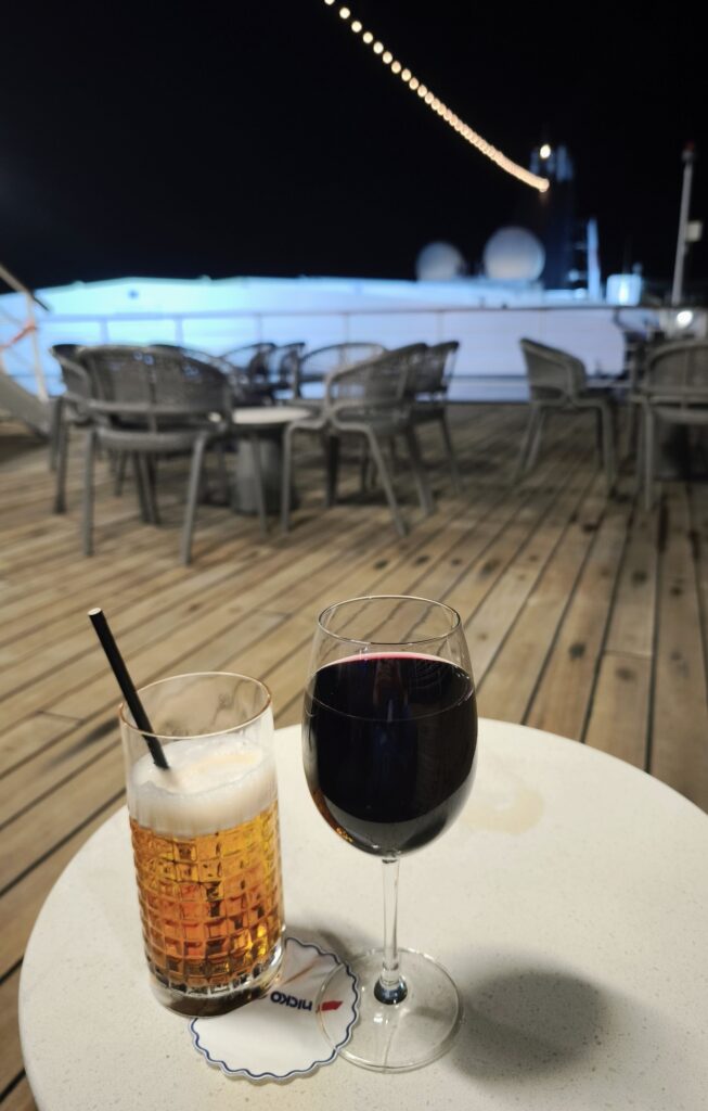 Feierabend am Heck auf Deck 11. Da ging auch die Lichterkette noch.