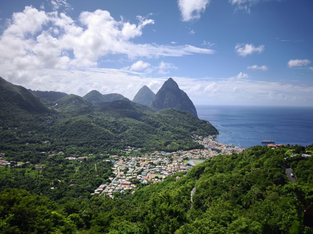 Die 2 spektakulären Zipfel heißen korrekt Gros Piton und Petit Piton und sind (vermutlich) erloschene Vulkane, wobei die Insel thermisch noch sehr aktiv ist. Das Gebiet gehört zum UNESCO-Weltnaturerbe.