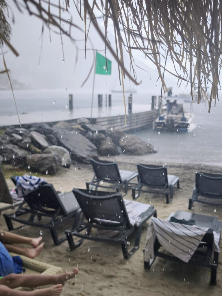 Sugar Beach. Plötzliche Regengüsse können in der Karibik eine ungeahnte Intensität erreichen. Glücklicherweise ereilte er uns erst am Ende unseres Aufenthaltes dort, vorher war mir wundervolles Schnorcheln vergönnt 🐠🐡🦐🦑🐟😍