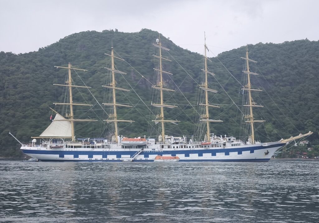 Unten die Starclipper. Wie auf der Sea Cloud kann man Kreuzfahrten darauf buchen. Ein Traum.