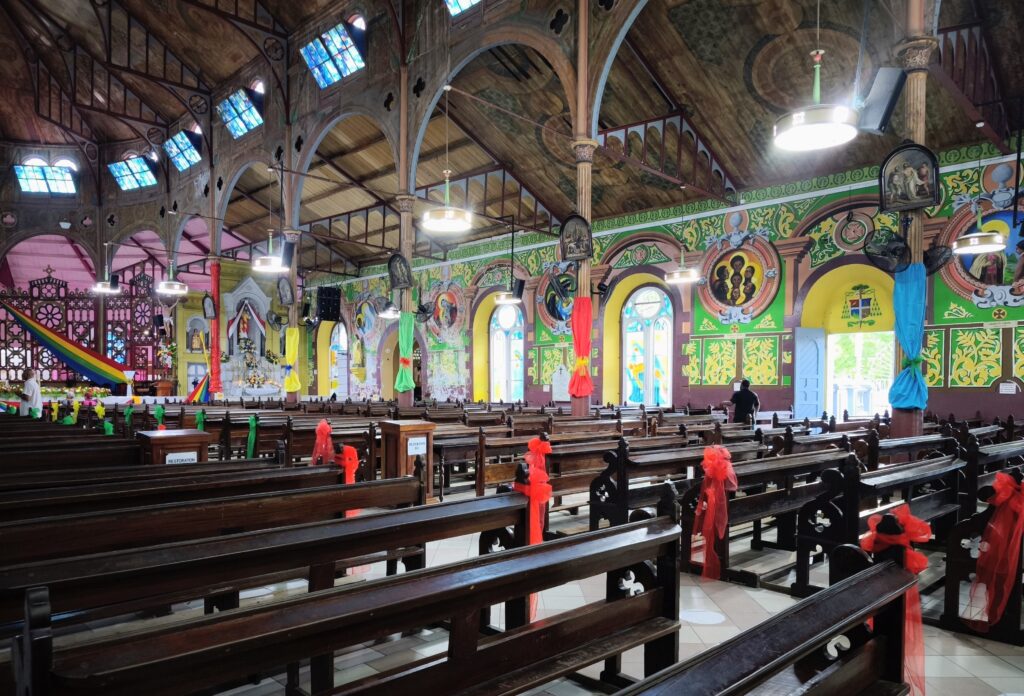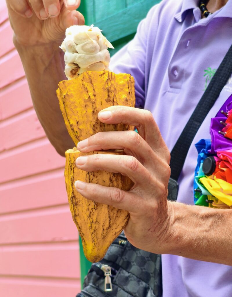 Vorher gab es im Bus noch Chips mit einem gelben, salzigen ketchupartigen Dip zum Probieren. Überraschung – er wird auch aus Bananen hergestellt, konsequent sind sie ja, die Kariben. Natürlich habe ich auch Bananenketchup gekauft.