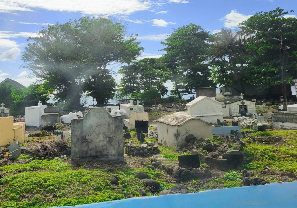 Vorbei an einem karibischen Friedhof.