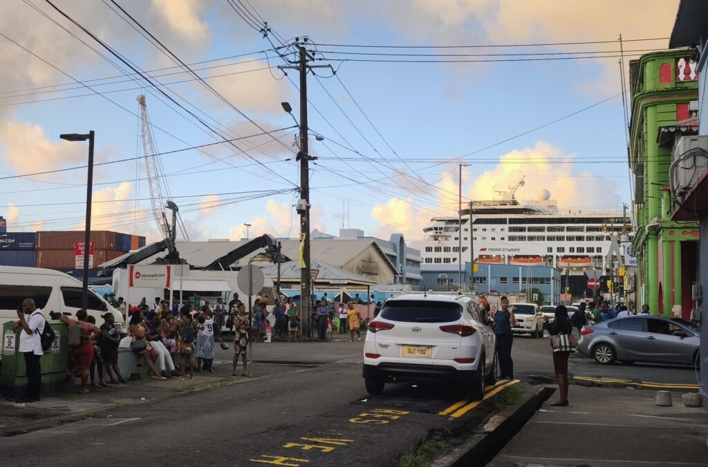 Rush hour in Castries, im Hintergrund unser Schiff.