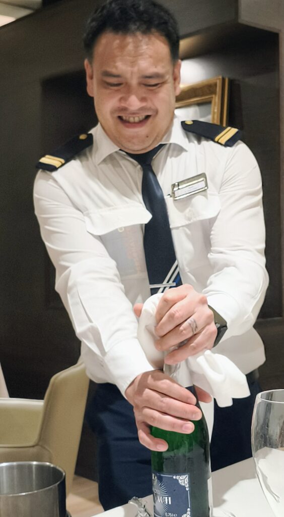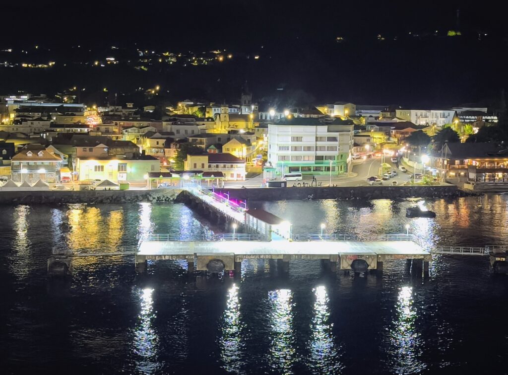 Frühstück am Heck auf Deck 11 beim Einparken in Dominica (nein, nicht die Dominikanische Republik), unserem heutigen karibischen Ziel.